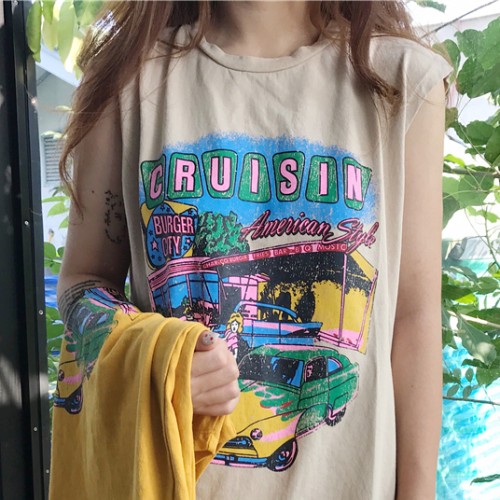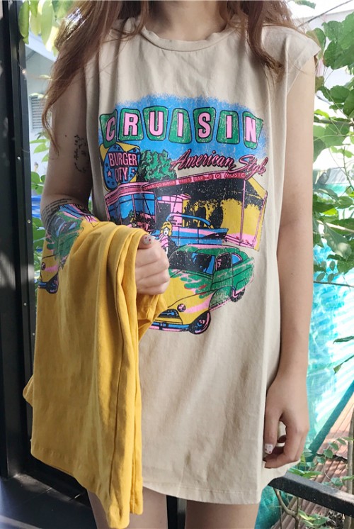 Áo Thun Không Tay Form Dài Vàng