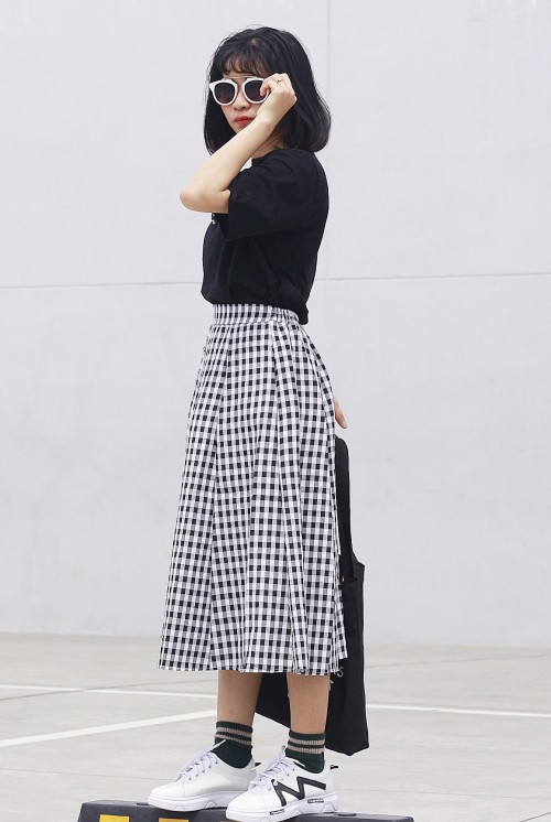 Chân váy maxi lưới 3 tầng-Xám đậm