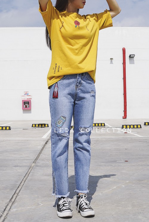 Quần jean dài viền xanh đậm-Xanh đậm-S